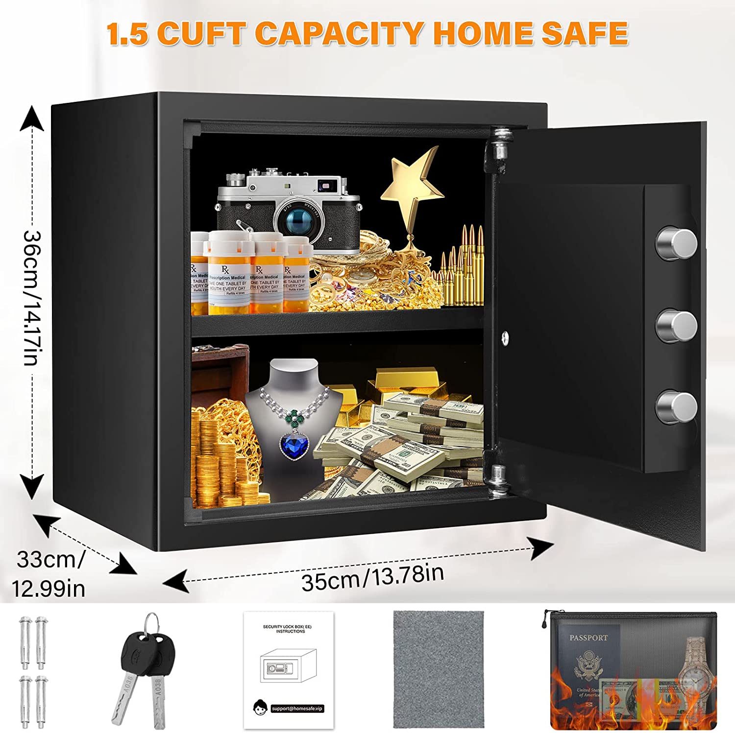 1.5 Cubic Fireproof Safe Box for Home, Anti-Theft Security Home Safe with Fireproof Bag, Money Safe with Removable Shelf & Combination Lock for Firearm Medicine Money