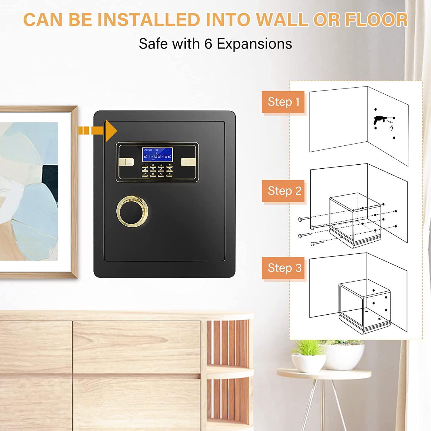 • 🔥【HIDE PASSWORD AND ANCHORING DESIGN】If you don’t want the password you entered to be displayed on the screen, you can hide it. Anchoring design make you easily fix the safe to the wall or floor, improves safety and reliability