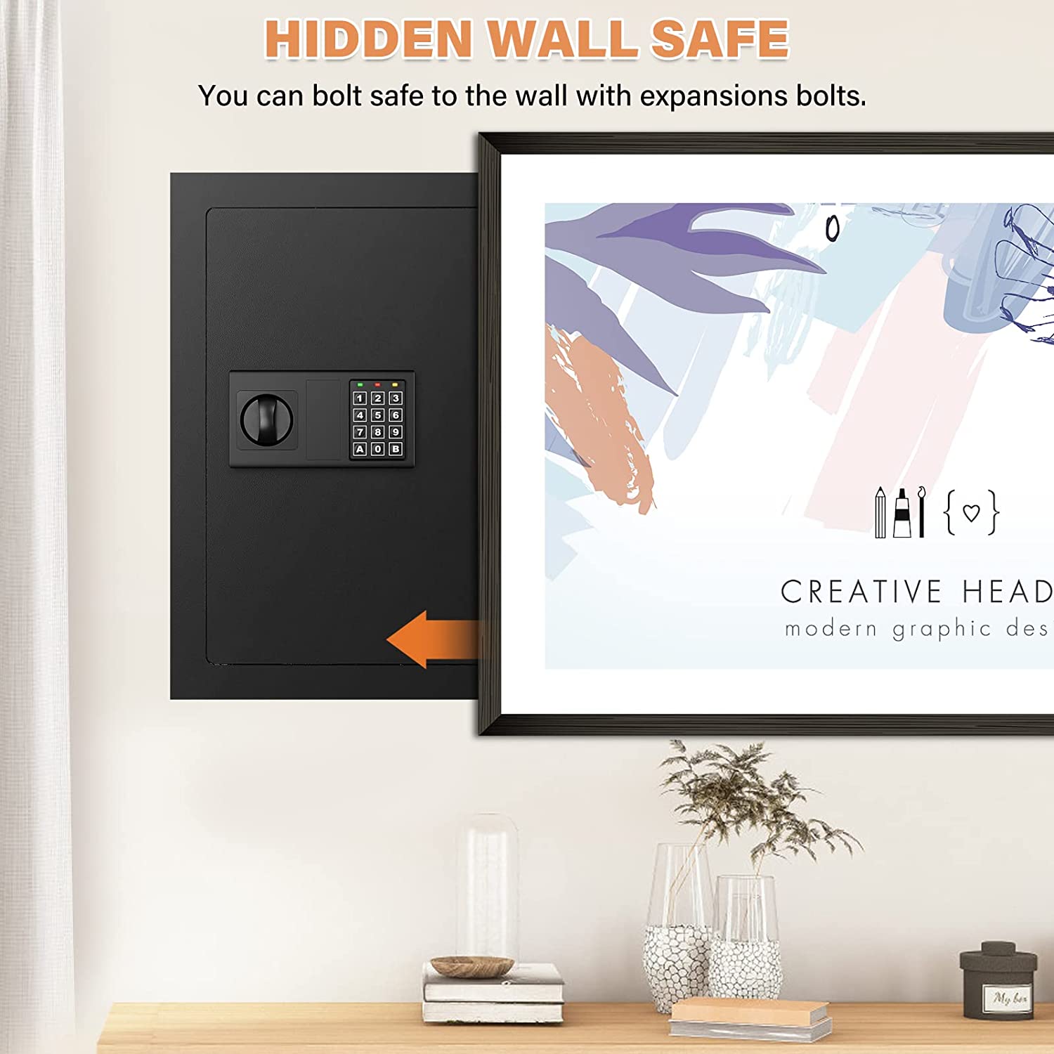 22.05" Tall Fireproof Wall Safes Between the Studs 16" Centers, Electronic Hidden Safe with Removable Shelf, Home Safe for Firearms, Money, Jewelry, Passport