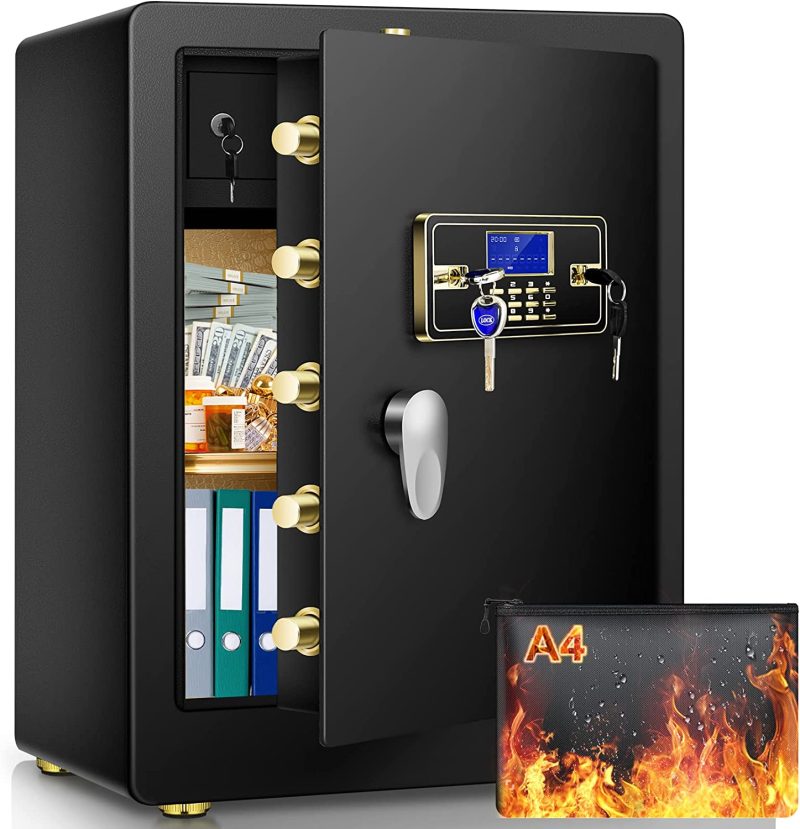 3.2 Cub Large Home Safe Fireproof Waterproof, Fireproof Safe Box with Fireproof Documents Bag, Security Safe with Double Safety Key Lock and LCD Display, Inner Cabinet Box, Safe box for Money