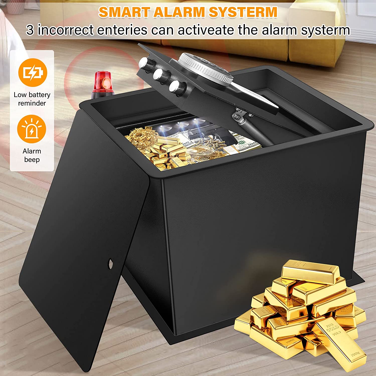 🔥🔥🔥【LARGE SECRET STORAGE ?? Product dimensions: 13.38″(H)*16.93″(W)*13.78″(D). The net weight: 40.78 pounds. Our underground safe is great for things like keeping items from prying eyes in your home such as sensitive documents, electronic storage drives, spare credit cards, medicine, gun etc., away from children or nosey visitors. BEST CHOICE FOR YOU TO PROTECT YOUR VALUABLES FROM THEFT.